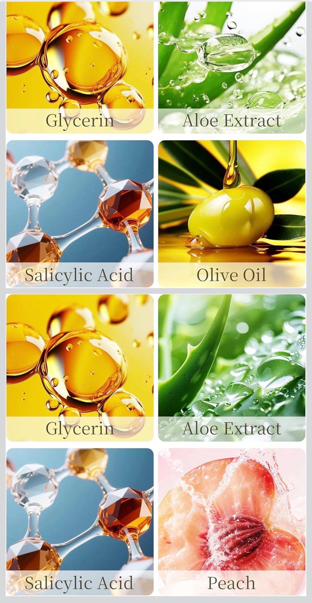 Formulated with a powerful blend of natural ingredients including Glycerin, Aloe Extract, Salicylic Acid, and nourishing fruit extracts like Peach, Olive, and Strawberry, this product works deep within the skin to: