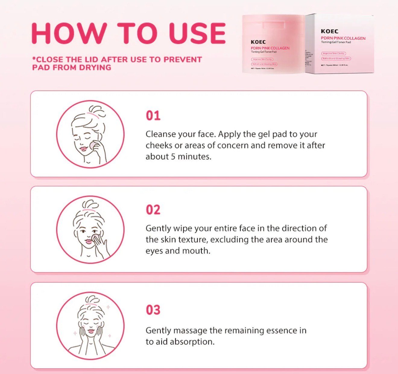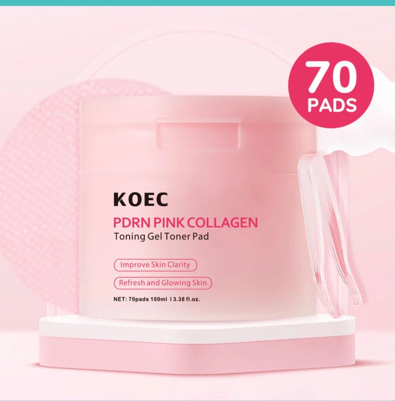 Unlock freshness and clarity with the KOEC PDRN Pink Collagen Toning Gel Toner Pads. These innovative gel pads are enriched with powerful actives like PDRN (DNA‑derived regenerative ingredient), Niacinamide, Hydrolyzed Collagen, Asiaticoside and Rosa Rugosa Flower Water — all working together to enhance skin tone, improve texture and refresh tired or dull skin.